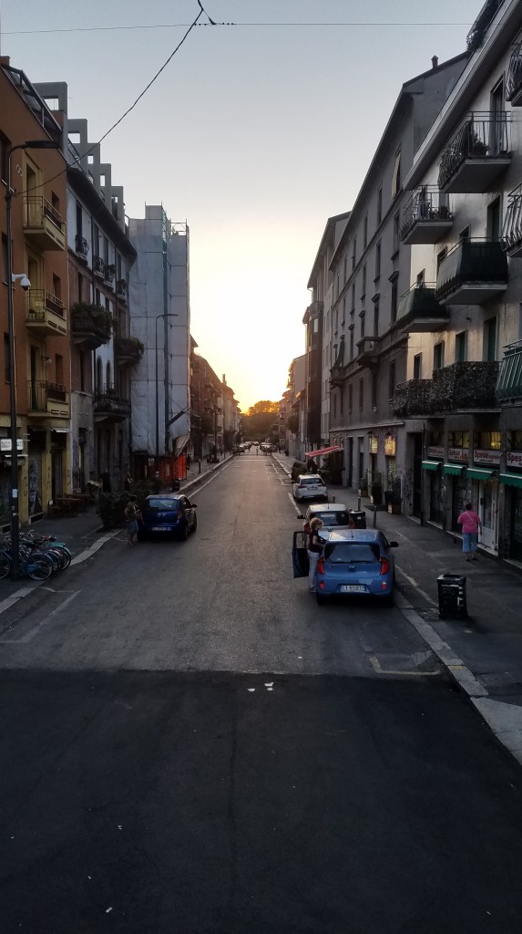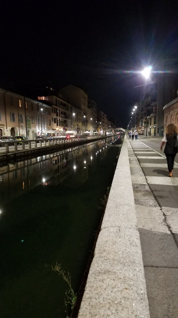 We arrived at Cadorna station and followed the flood of people off the train and then I’m sure we immediately glazed over with a confused look. The signage wasn’t quite enough to help us get where we needed to go, so Mom asked directions from a train employee and she sent us in a general direction past a row of turnstiles. Past a few shops and down into the metro station where I spotted the ticket machine. Another lost American moment… We were taking too long to get our 4€ out so an attendant who was hovering had the couple behind us take those two tickets. No time to waste clearly! With tickets in hand we wandered our way to the green line (per our Airbnb host’s instructions), entered though the turnstiles which led us down to a platform. We needed to get to Porto Genova so we packed on the metro headed for Assago/Abbiategrasso (the metro lines are labeled by the last stop on the line).