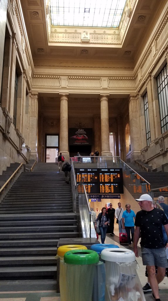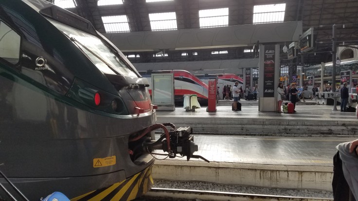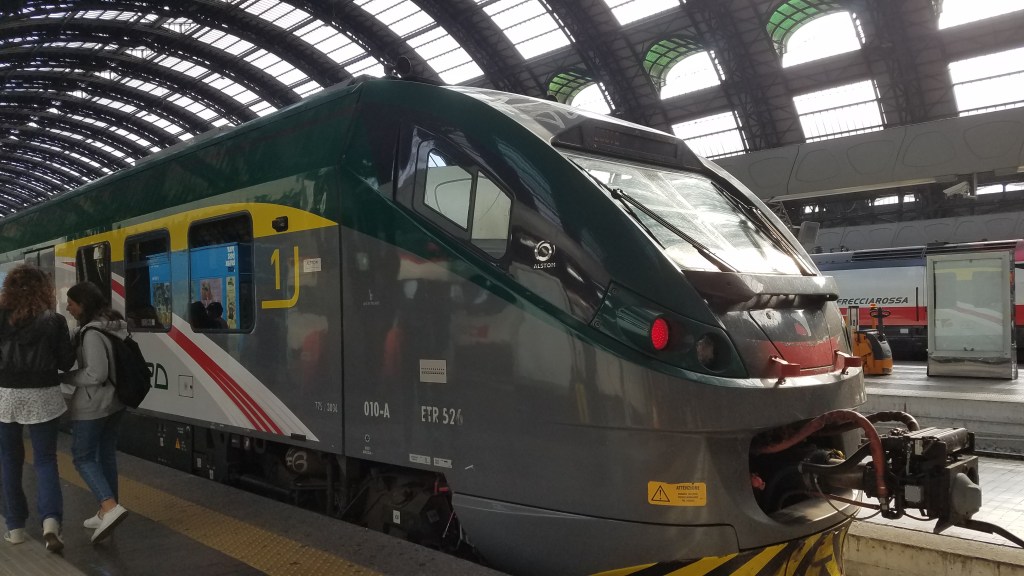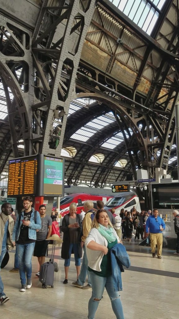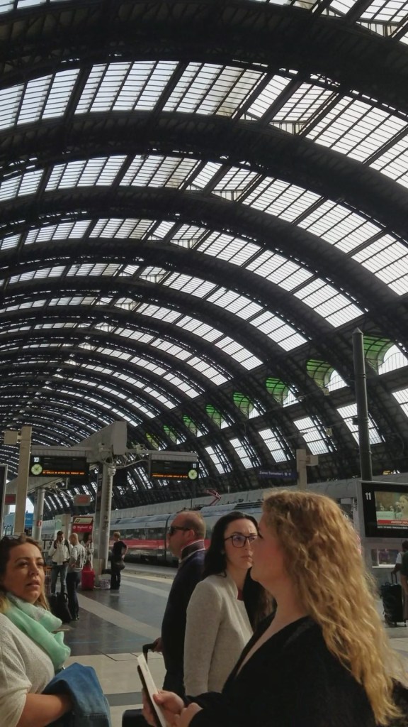 This morning Mom just had to set the alarm for 6:45 am even though we didn’t get to bed until almost midnight last night. We didn’t have a precise schedule this morning except that we wanted to make the 10:20 am train to Varenna from Milan. It was good that we’d gotten 90% packed up last night because this morning I was tired and didn’t even want to get out of bed. We left our apartment around 8:30-9 and headed back to the Cadorna station that we originally arrived at, except we took a different route that wasn’t familiar. But we made it just fine onto the right metro and made sure we had our 4€ ready before we got to the ticket (biglietto) machine. Our plan was to take the metro from Porta Genova to Milano Centrale and then catch a train from there to Varenna. We had been warned many many times of the expert pick pockets in Italian cities and crowded train stations but there were far fewer people there than I expected. The place was a maze though. We got off the metro at I don’t know what floor, took at least two, maybe three, escalators and two sets of stairs before we got to the actual train station level. And oh my goodness. I’ve never seen anything like it. It had to have had close to 30 platforms and a huge glass domed ceiling over all of it. Quite an impressive engineering feat.