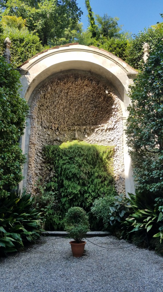 We arrived at the villa around 11 and were enjoying ourselves so much, we had to rush to catch the 1450 boat over to Bellagio. The gardens had a surprising number of plants that we have at home; rhodies, azaleas, incense cedars, acuba japonica, bamboo, etc. Of course the environment here with the warmer temperatures probably makes them grow a bit faster. Mom and I had a proud moment however when we spotted their Dawn redwood… It looked pathetic compared to our amazing one at home. The grounds also had a feature similar to our drainage ditch so we got many ideas. The rock work everywhere is so inspiring, if only we had more at our disposal at home! There was also an olive orchard that was being revived on the grounds and provided a beautiful panoramic view of the lake.