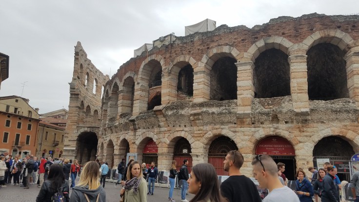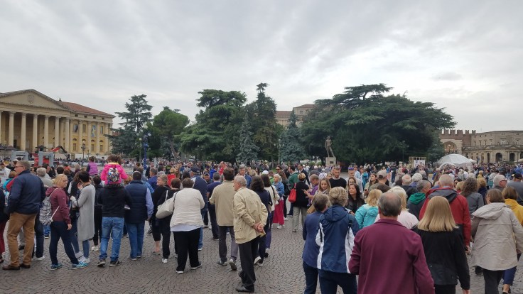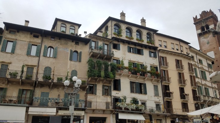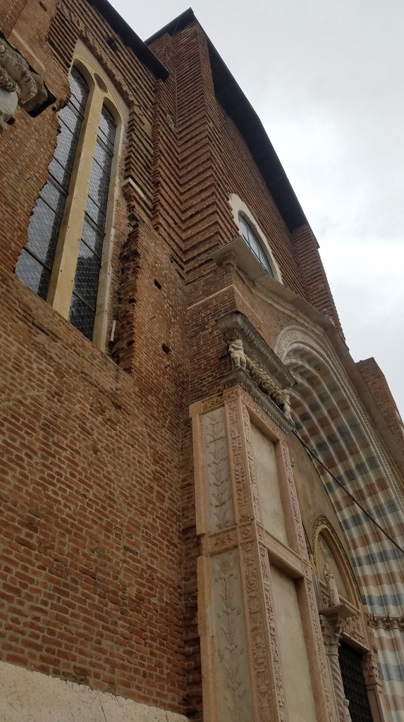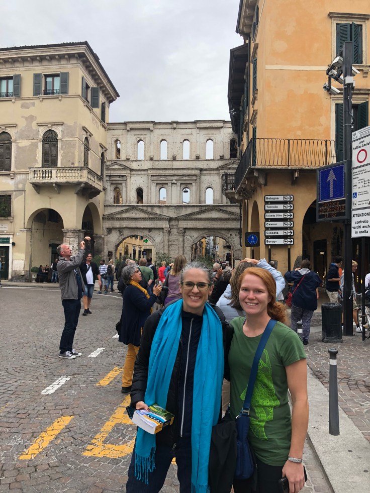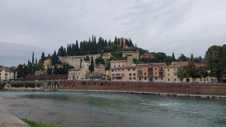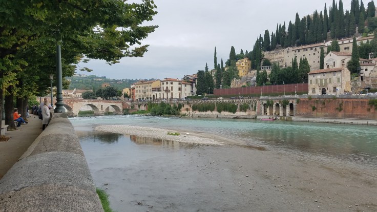 We made a quick pit stop at a truck stop where the toilet was free (usually you have to pay for a public toilet) and then drove on to Verona. We only had a couple hours to explore so we made the most of it by following RS’s recommended walking tour and getting some great gelato. We saw Verona’s Arena, a couple beautiful churches (one was just starting Mass), bridges that had been bombed and rebuilt from the original materials, the tombs of the Scaliger family, and Verona’s Duomo.