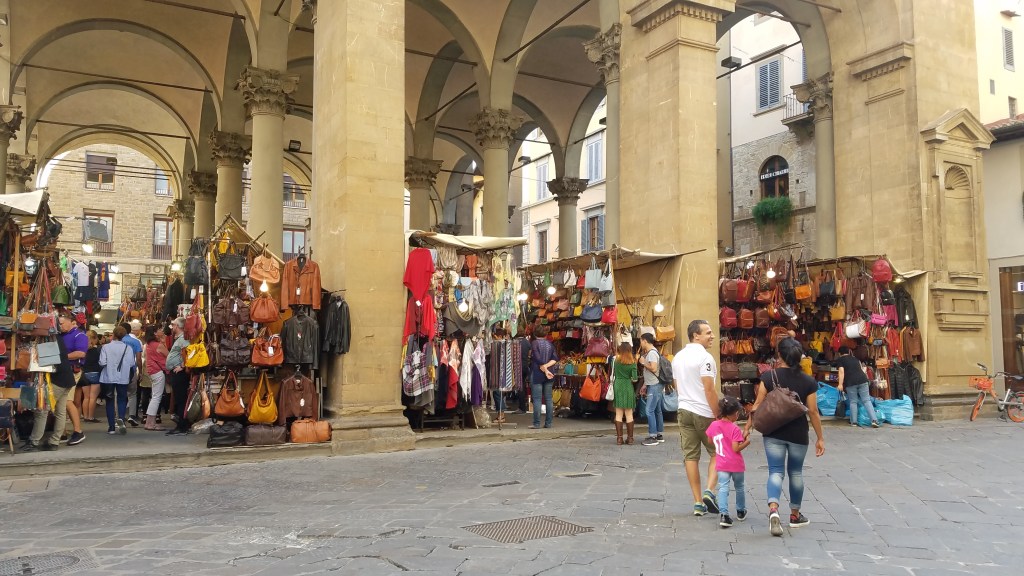 As we arrived in Florence, Sarah played Hotel California because guess the name of our hotel… Our rooms weren’t quite ready, so we dropped bags and went for a walk. Tara studied abroad in Florence so she became mom’s and my temporary tour guide. Our hotel was just a couple blocks from the Duomo and we had a few hours on our own, so we set off to do a quick tour. We circled the Duomo and baptistery, and then headed for the mercato centrale to grab a small lunch.