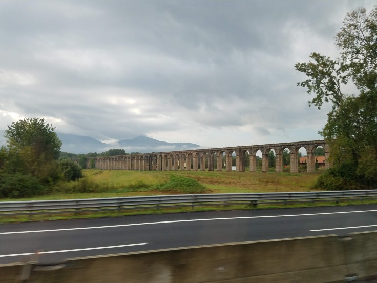 We were all in a somber mood as we re-boarded the bus and set off for our second stop, Pisa. We passed this ancient aqueduct on the way that stretched as far as we could see in either direction.