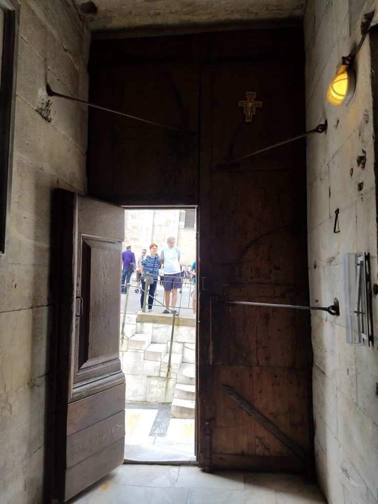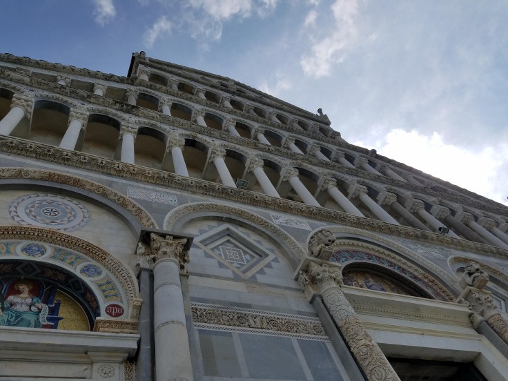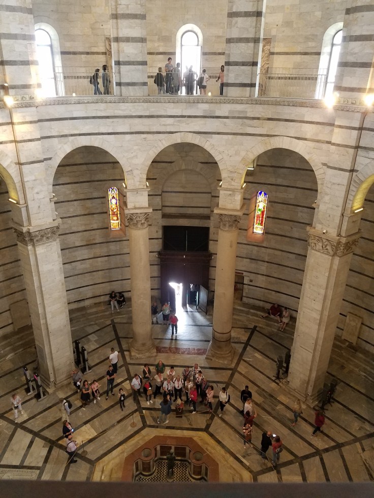 Second stop: the baptistery. A few things made this baptistery memorable. Firstly the domed roof is covered half with tiles and half with lead. The lead half faces the sea and is better able to withstand the salt air. Secondly, the multitude of arches and high balcony create amazing acoustics. Every half hour, one of the employees comes into the center of the room and sings for a couple minutes. It’s very simple, just a few different tones, but the reverberation was amazing. It sounded like she was singing three different things at once.