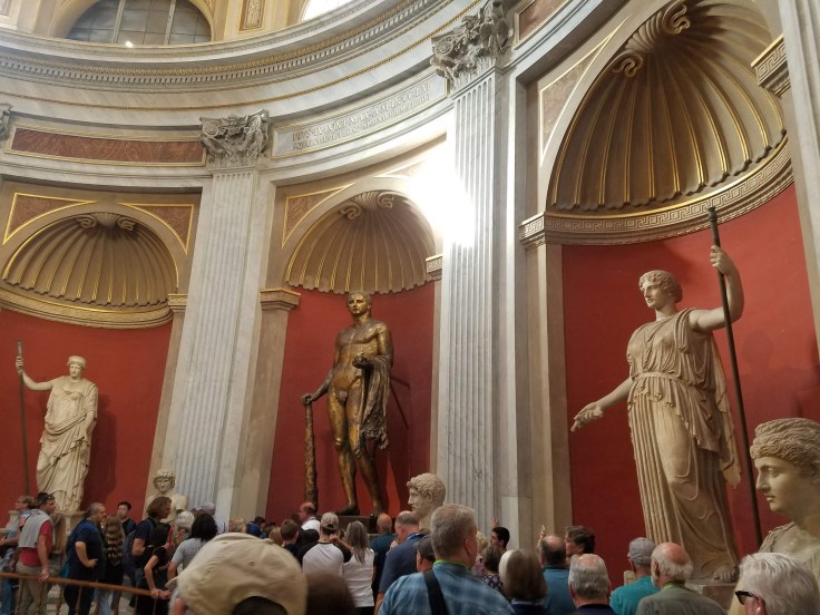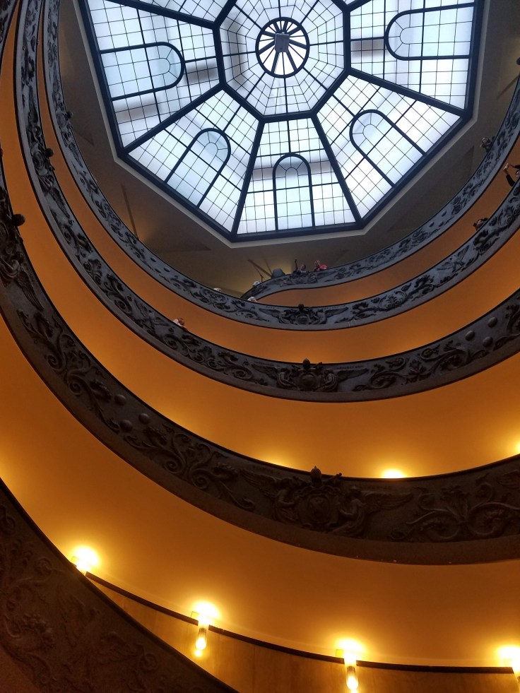As we were gathering up and getting ready to head out of the museum, Sarah was impolitely asked for her radio (over €80) by one of the guards. She filled us in later that they were having an especially frustrating day, plus she wasn’t authorized to guide in the Vatican – our local guide had left us at that point so it looked like Sarah had been doing it all along. It was quite upsetting for everyone in the moment but luckily the guard gave it back to her after thinking about it for a minute. Either way, it was time to leave the museum. We were overflowing with information, visually and mentally, plus it had been very loud in there.