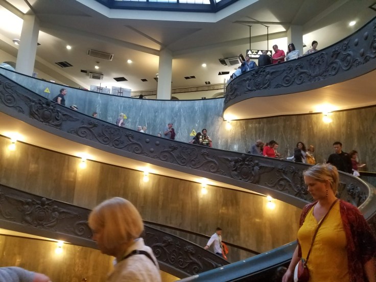We gathered up, switched our tour radios for the Vatican approved (holy) radios, and then headed for the metro station down the street. Mom and I already had a dose of metro use in Milan, so this was pretty easy, but Sarah explained how it worked again to everyone. After we’d figured out the routes, we took the metro (plus a few blocks of walking) to the Vatican museums.