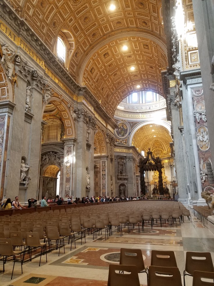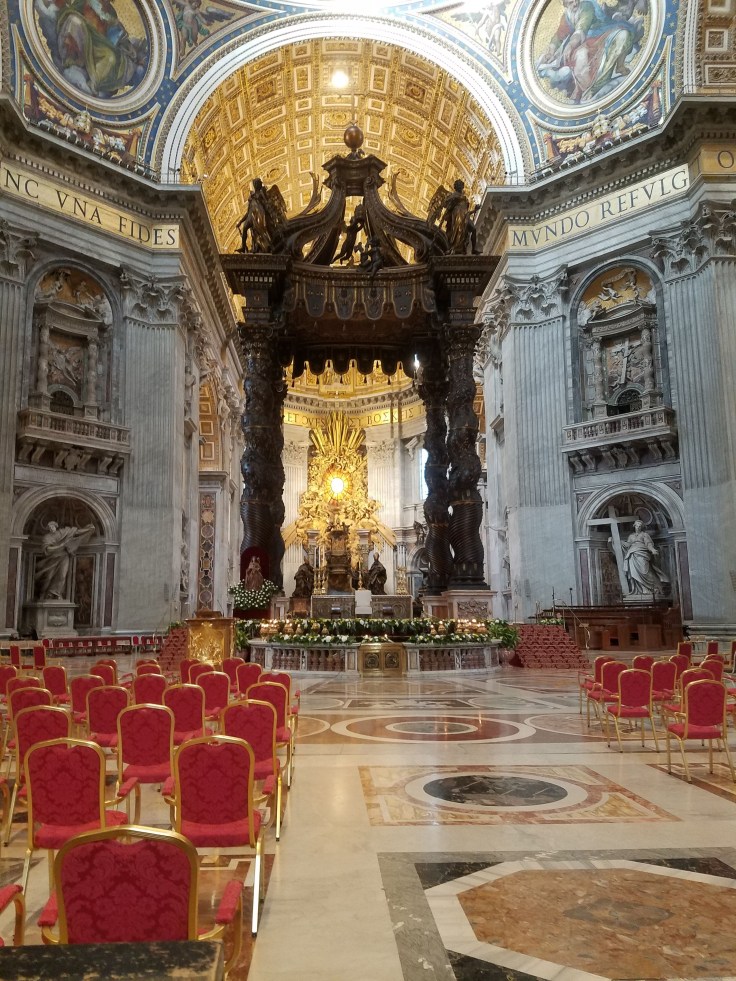 By the time we left St. Peters, it was after 11 and the entry line was so long and winding, I couldn’t even follow it’s path to find the end if I’d wanted to. The church closed at 11:30 so I would imagine there were a lot of disappointed tourists.