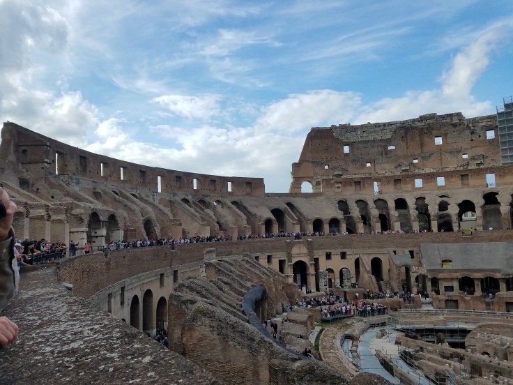 So much of the seating in the Colosseum is gone, it was very hard for me to imagine it as it was in it’s glory days. The uppermost part of the building originally had iron connection points to which they would attach a huge canvas cover to keep the crowds sheltered from the weather, extreme heat or rain, I would imagine.