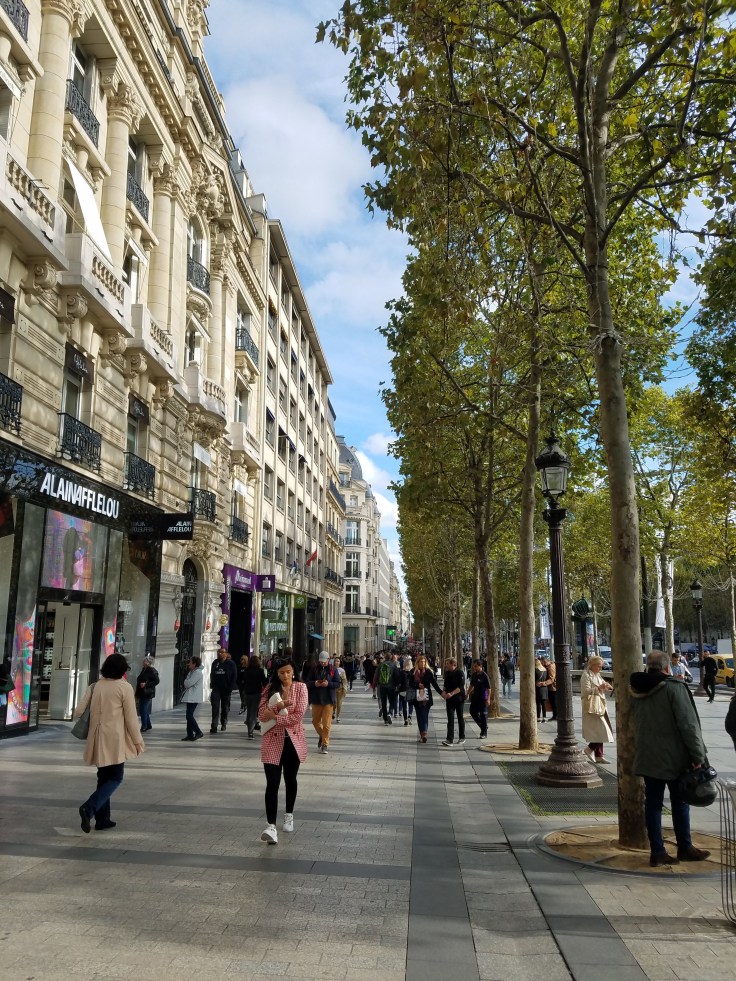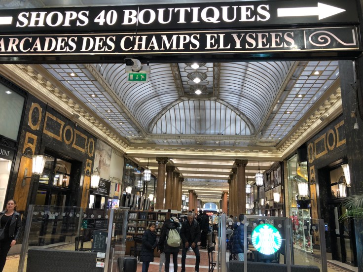 Back on street level, we crossed under the roundabout again and came out onto the Champs-Élysées. We had exactly an hour to walk the ~2 1/4 miles to the Louvre. And we made it in the nick of time. I’m not a shopper so I didn’t really feel any need to go in any stores along the Champs-Élysées, but Mom wanted to check some out. We probably picked the cheapest indoor strip mall there was, but it was an inviting entrance. I’d become used to seeing all the fancy, expensive, brand-name stores all over Italy, so this wasn’t much different. It was actually funny to see the same stores with the EXACT same window displays.
