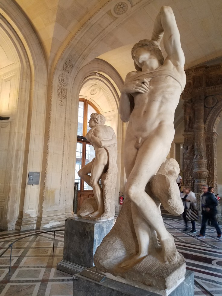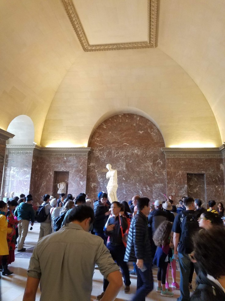 Luckily there was no problem getting in, except in my rush we didn’t grab a map of the Louvre/maze. This made following Rick Steves audio tour a bit challenging, but I think we managed to find all the highlights, with a little help from other art admirers.