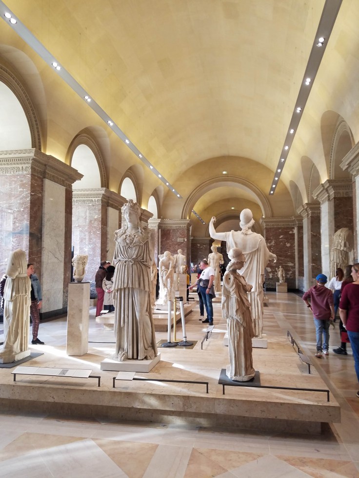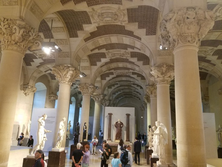 Given that we had a Seine cruise reservation at 7:45 pm, we didn’t exactly rush through the Louvre, but we didn’t take our time to look at every single piece of art in there either. I think it was actual good that we had a time constraint cause it made us use our time wisely. I’m still unsure exactly how the Louvre is laid out, but I guess we really only saw a third (the Denon wing) of the museum, which was plenty. I was happy to see a few of my favorite sculptures again but bummed that we were just a few days too early to see the da Vinci exhibit.